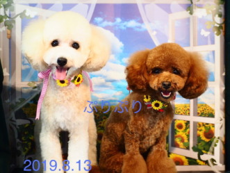 2019年8月 トイプードルの ひまわりちゃんと そらちゃん 炭酸バスでとっても綺麗になりました!