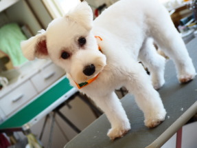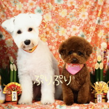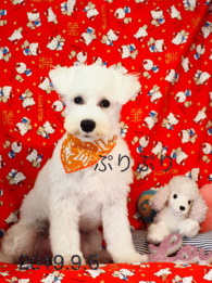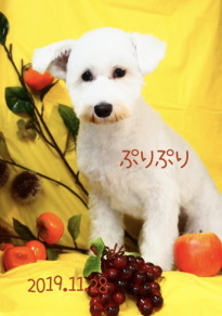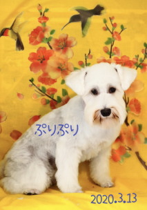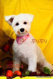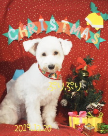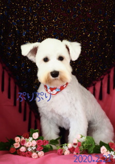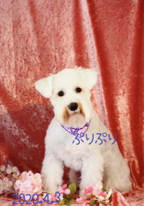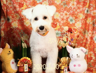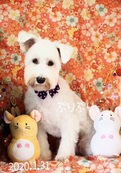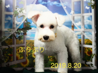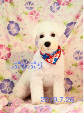 2019年7月 真っ白のシュナウザーノパンちゃん 4か月でとっても可愛い! うめこちゃんと一緒にお写真撮りました